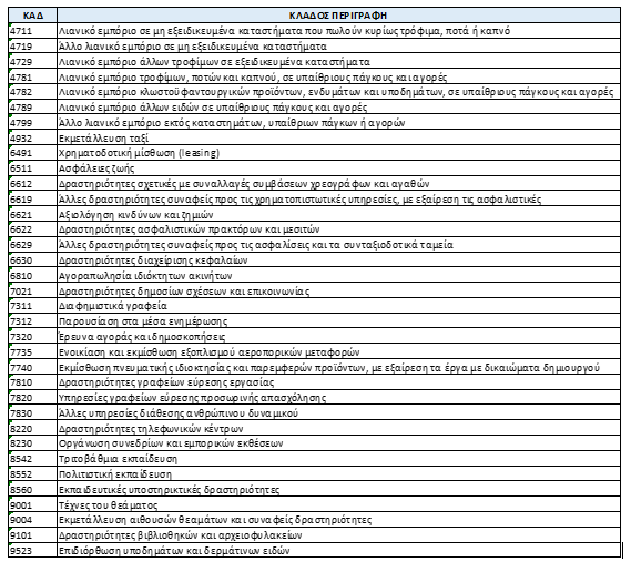 Οι νέοι ΚΑΔ εμφανίζονται στον παρακάτω πίνακα: