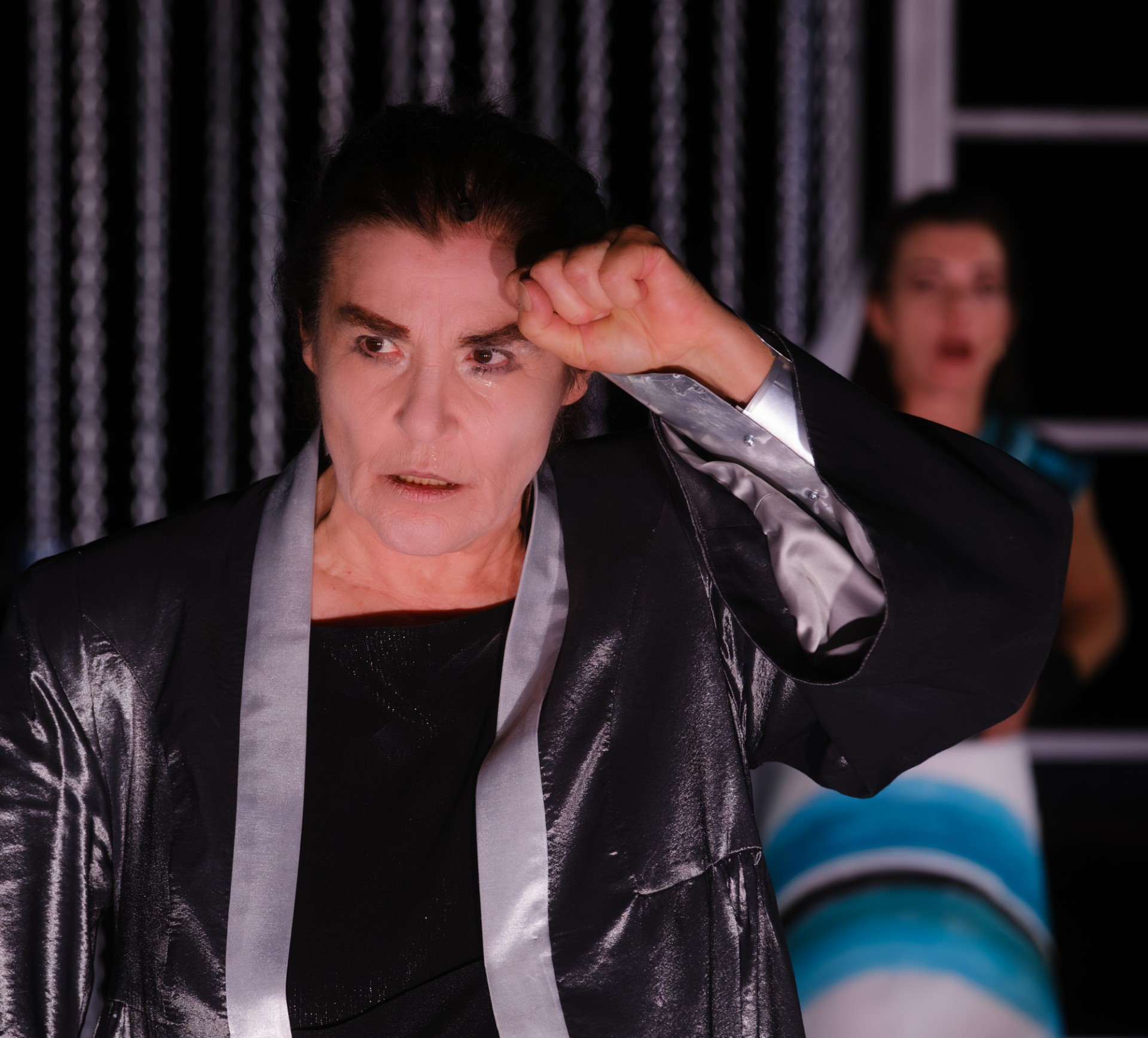 Αρχίζει, λοιπόν, να τραγουδάει (σε μουσική σύνθεση άλλης, επίσης, ατμόσφαιρας Χαράλαμπου Γώγιου και ικανή Μουσική Διδασκαλία, Ειρήνης Πατσέα και Σιμέλα Εμμανουηλίδου) σαν να ήταν όμως σε μια άλλη παράσταση η σαν συμμετοχή της σε συναυλία. Αποκομμένη από το όλο κλίμα και την συνέχεια-συνέπεια της Τραγωδίας ”Ικέτιδες”. Ας μου επιτραπεί να γράψω το περιττό της εμφάνισης της κ. Σάττι που έχει μια σπάνια φωνή, καλή σκηνική παρουσία και ικανό εκτόπισμα. Ας μου επιτραπεί, επίσης, να γράψω, πως όλο αυτό (συμπεριλαμβανομένων και των ανωτέρω γραφομένων) εντάχτηκαν για να προσελκύσουν το κοινό που περισσότερο αρέσκεται στην ψυχαγωγική πλευρά του Θεάτρου. Ίσως έτσι εξηγείται και διήμερη πληρότητα.