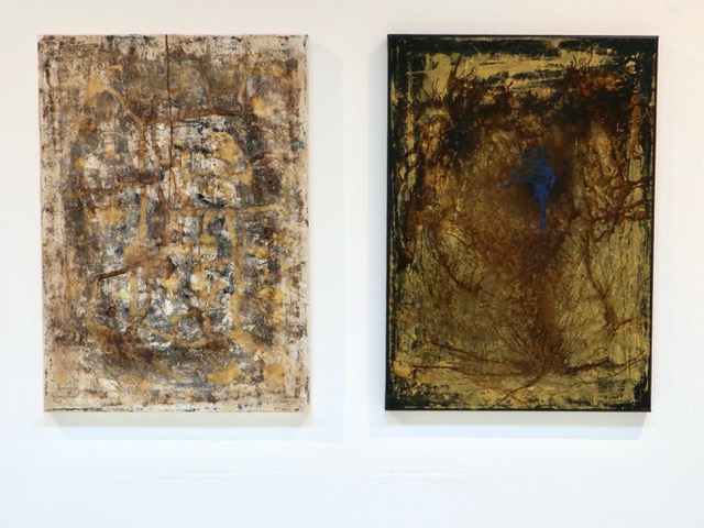 Στην έκθεση εκτίθενται πενήντα οκτώ έργα, ακρυλικά σε καμβά, τα περισσότερα ζωγραφισμένα τον τελευταίο χρόνο, καθώς και έντεκα ενότητες του ποιήματος «Πόλεμος», από την συλλογή «Οχυρά».